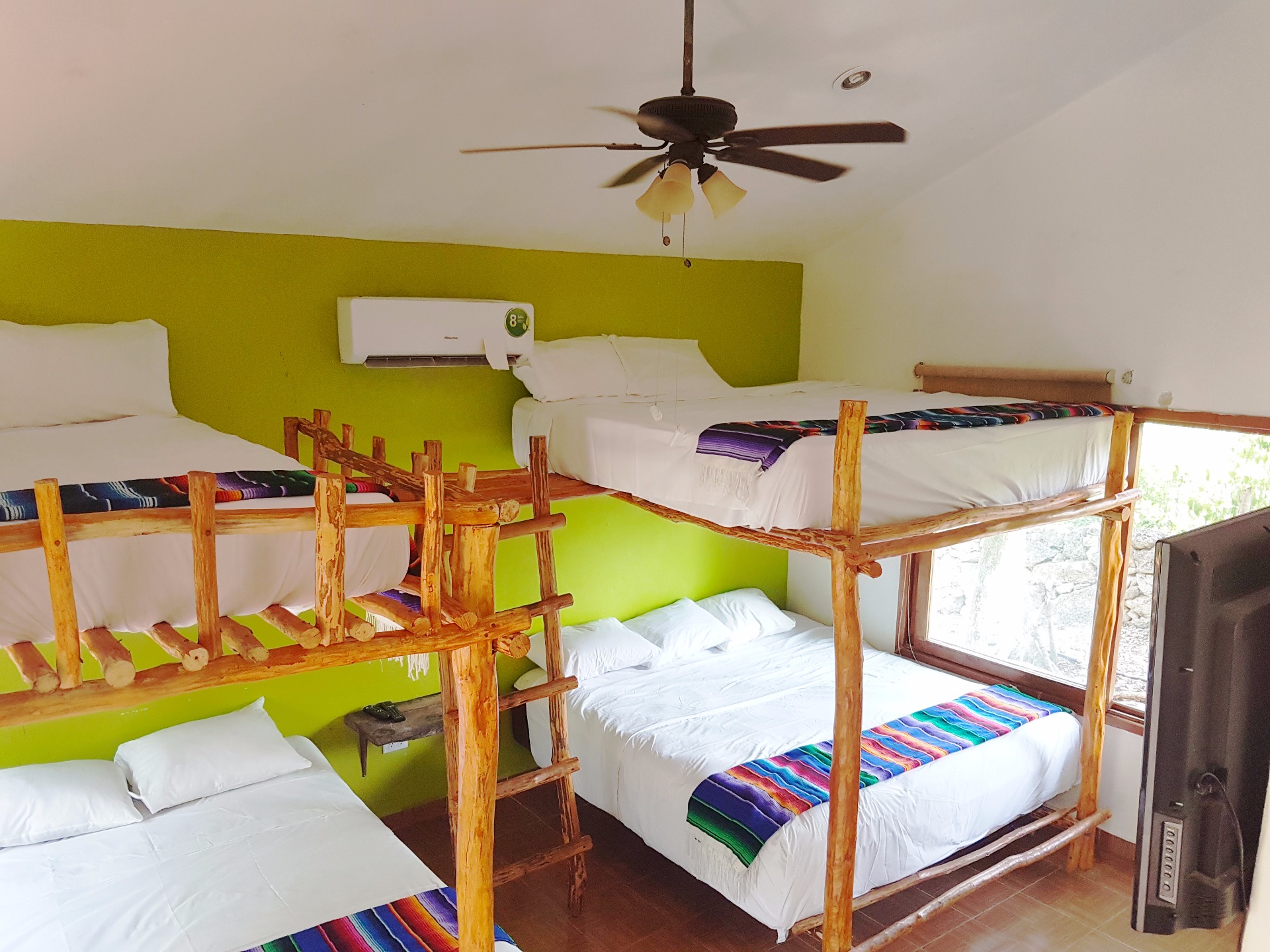 La habitación cuenta con 3 camas tamaño king size y una cama tamaño queen size, permitiéndose una ocupación máxima de 10 personas o hasta 8 adultos con 2 niños.